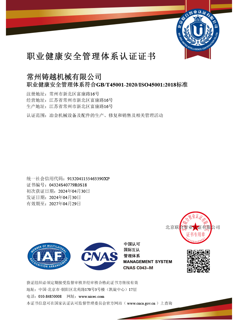 職業(yè)健康安全管理體系認(rèn)證證書
