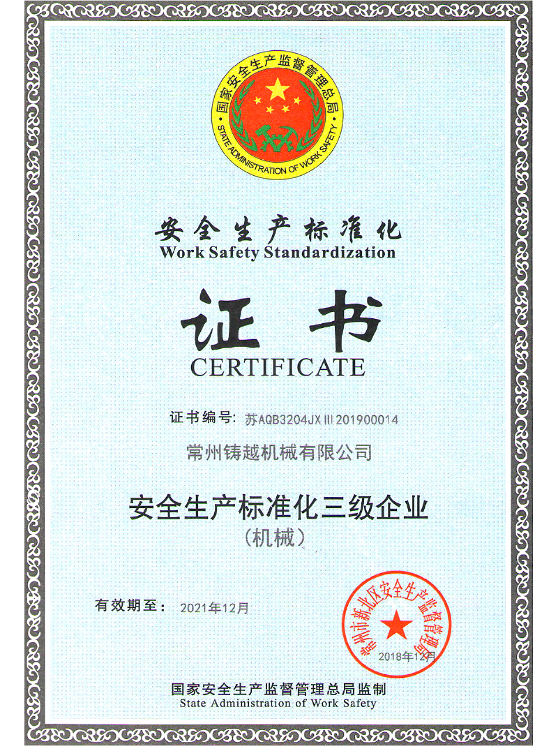 安全生產(chǎn)標(biāo)準(zhǔn)化證書